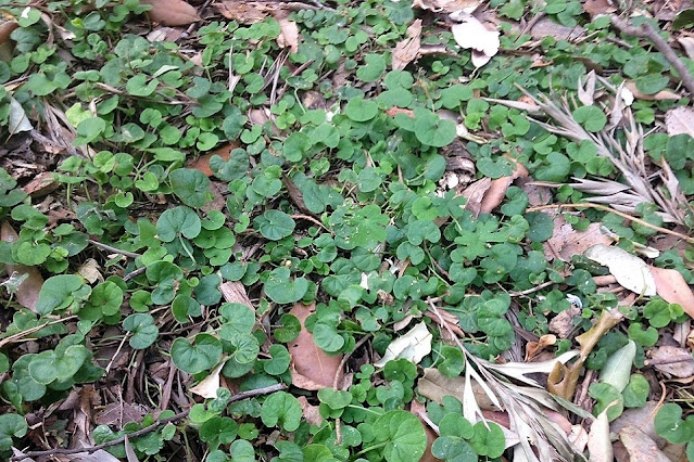 Kidney Weed, Dichondra repens, also known as Dichondra, is a locally common low-growing ground-cover that forms dense mats in suitable conditions. NSW PlantNET gives its Dharawal language name as yilibili. Dichondra's natural distribution is wide and it occurs in every state and territory apart from the Northern Territory. It is also widely cultivated and used in gardens and landscaping, being one of the most regularly seen ground cover species across coastal eastern Australia and south-west Western Australia. It's a low-maintenance option for a wide range of garden situations, and easily sourced.